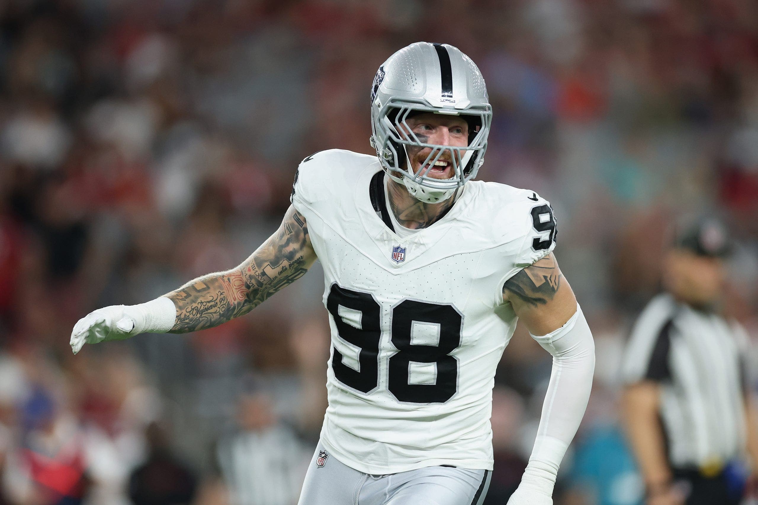 Raiders’ defensive end Maxx Crosby will look to have a field day in New England this weekend.