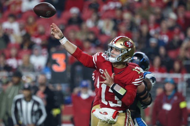 Brock Purdy had a nightmare efficiency versus the Panthers. Will he discover the consistency wanted to guide the 49ers to the postseason? (Photograph by Jed Jacobsohn/Getty Photographs)