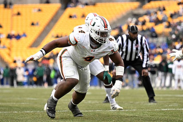 As a sixth-year collegiate athlete, Mesidor (24) was literally a man amongst boys for Miami a year ago, leading the ACC with 10.5 sacks and forcing four fumbles. He wins in more ways than perhaps any rusher in this class, pairing impressive physical traits such as burst, bend and power with refined hand play and nuanced counter moves.