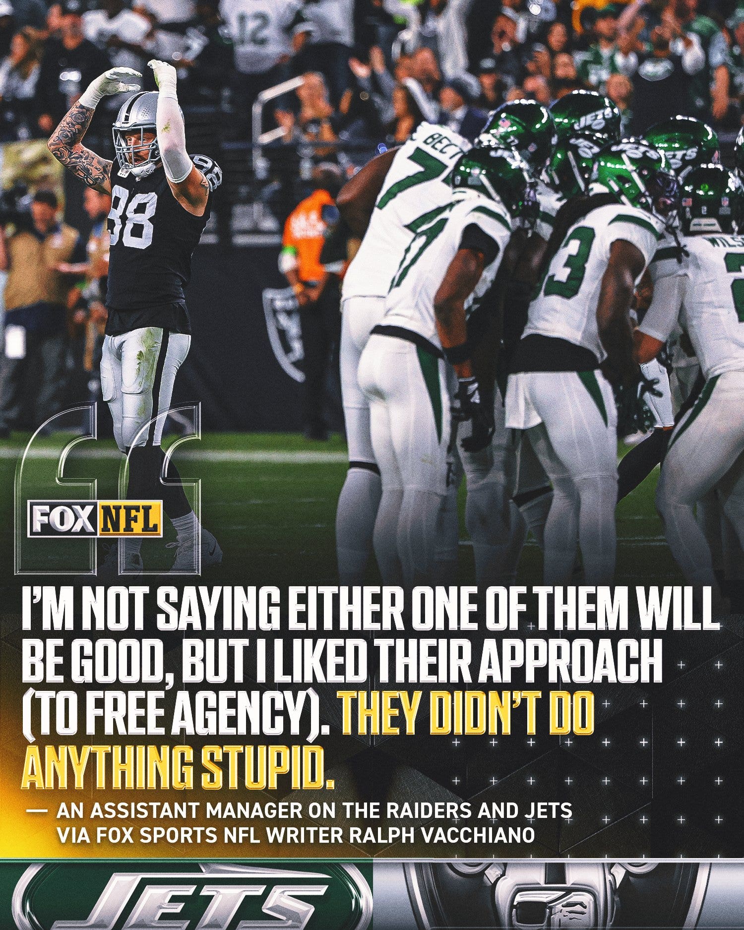 They overpaid for center Tyler Linderbaum, but he may be worth it to them and their soon-to-be rookie QB, Fernando Mendoza. They upgraded their defense too, and added an underrated wide receiver in Jalen Nailor. And getting Maxx Crosby back is a nice consolation prize for a trade that went wrong.