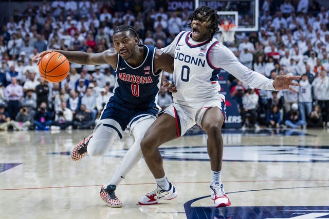Though Peat was somewhat quieter in subsequent games against Utah Tech (18 points), Northern Arizona (10 points) and UCLA (seven points), he was unquestionably the most talented player on the floor against UConn on Wednesday night. At 6-foot-8, 235 pounds, Peat wielded size and strength advantages over UConn senior forward Alex Karaban, carving out space in the lane and scoring easily around the rim. He followed a missed layup from Arizona guard Jaden Bradley by tipping an offensive rebound off the glass to himself and then scoring on his second try. By halftime, Peat had already scored nine points and snagged seven rebounds as the Huskies hunted for a better defensive matchup after Karaban picked up his second foul.
