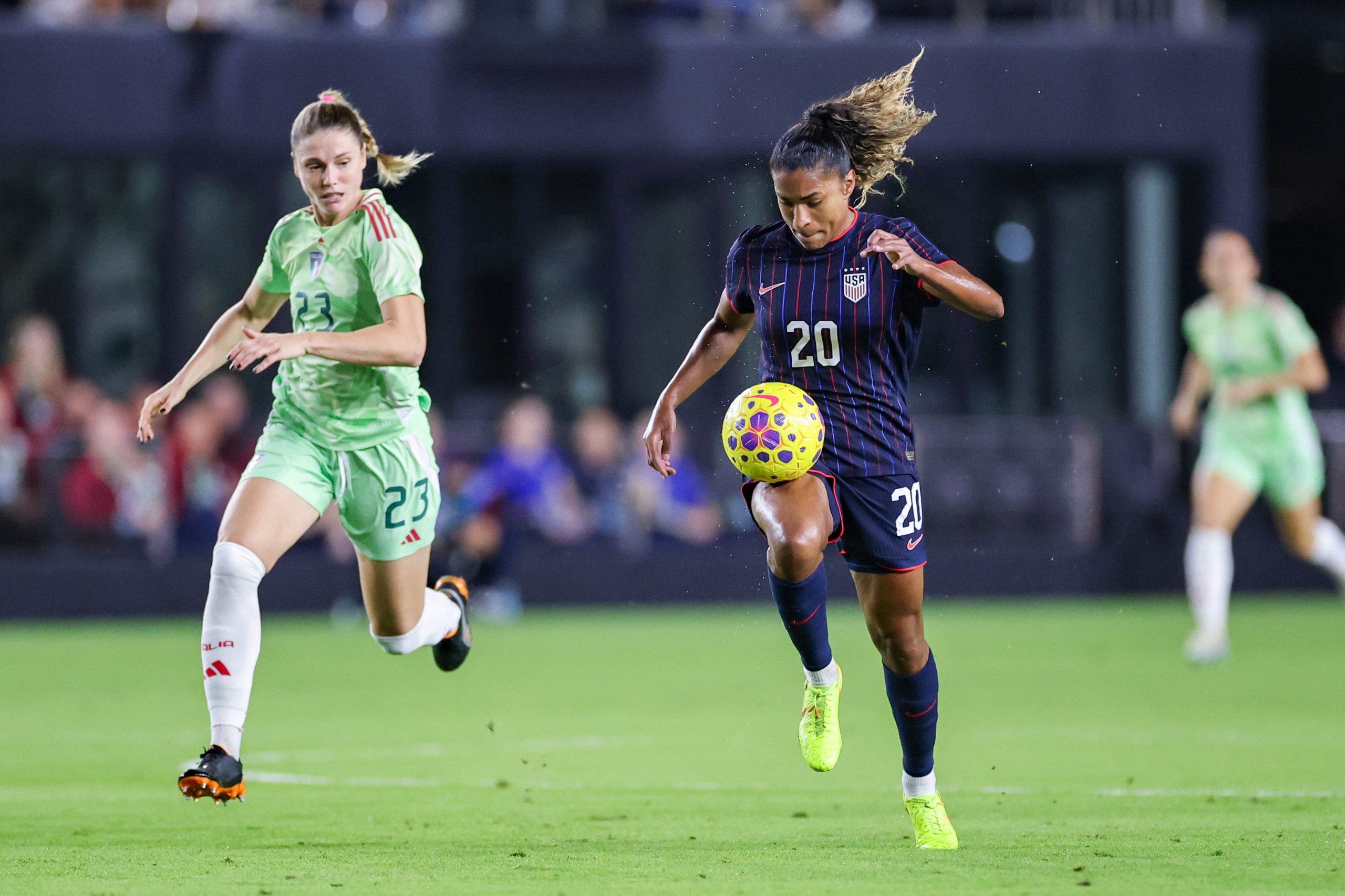 Le Azzure were semifinalists in this summer’s Euros, but the USWNT were able to come out on top in Monday’s 2-0 win following last Friday’s 3-0 victory. Striker Catarina Macario scored three goals across the two games. Goalkeeper Claudia Dickey started both matches and star defender Naomi Girma returned to the squad after an injury kept her out of camp for most of the year.