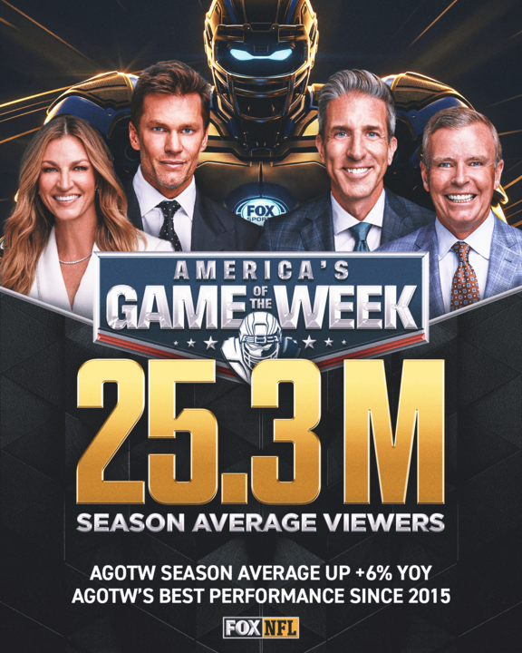 The FOX NFL Sunday show had its best season since 2022 with an average of 4.4 million viewers. The FOX NFL Kickoff show had its best season since 2019 with an average of 1.3 million viewers. On top of that, America’s Game of the Week averaged 25.28 million viewers, marking its best performance since 2015.