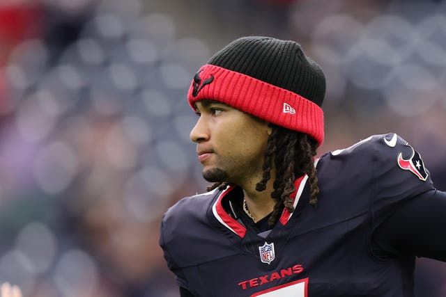 C.J. Stroud takes the field prior to the NFL Preseason 2025 game between Carolina Panthers and Houston Texans at NRG Stadium on August 16, 2025 in Houston, Texas. (Photo by Alex Slitz/Getty Images)