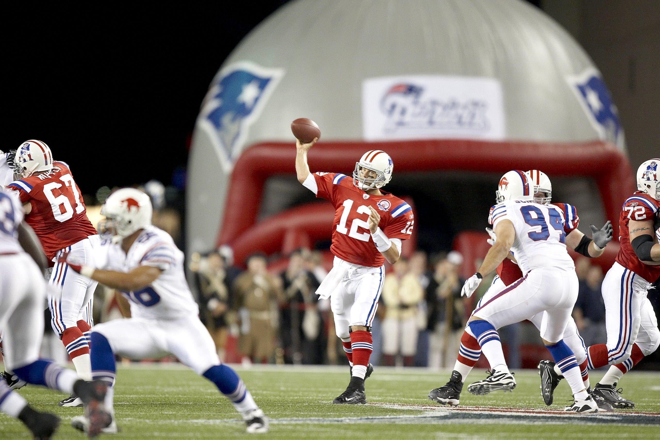 Brady, who won MVP in his last full season prior to the injury by throwing for a then-record 50 touchdowns in 2007, struggled early on in his first game back from the ACL tear. He only led the Patriots to 10 points in the first half against the Bills, throwing an interception that put his team down 14-10 going into the break.